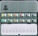 Für die Outdoor-Variante benutze ich eine Sammlung verschiedener Marken. Cotman, die Studio-Variante von Winsor, Schmincke, Daler-Rowney, Blockx etc.. Einige Hersteller bieten eine Profi- und eine Studio-Variante an. Welche von beiden wirklich die bessere und lichtstabilere ist wird sich in spätestens 100 Jahren zeigen. Die Auf- und Verarbeitung der Pigmente und Bindemittel in den Studienfarben ist nicht so aufwändig. Erdtöne haben oftmals die gleiche Kennziffer. Trotzdem habe ich das Gefühl, die Profifarben sind geschmeidiger und farbintensiver, als die der Studiofraktion.